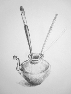 Im Kurs »Wahrnehmen & Zeichnen« lernt der Teilnehmer Elementares über Zeichen-/ Mal-/ Abstraktionstechniken, indem er sich auf das Zeichnen mit Trockentechniken, wie z.B. Bleistift, Graphitstift, Kohle, Rötel, Pastellkreide usw. konzentriert.